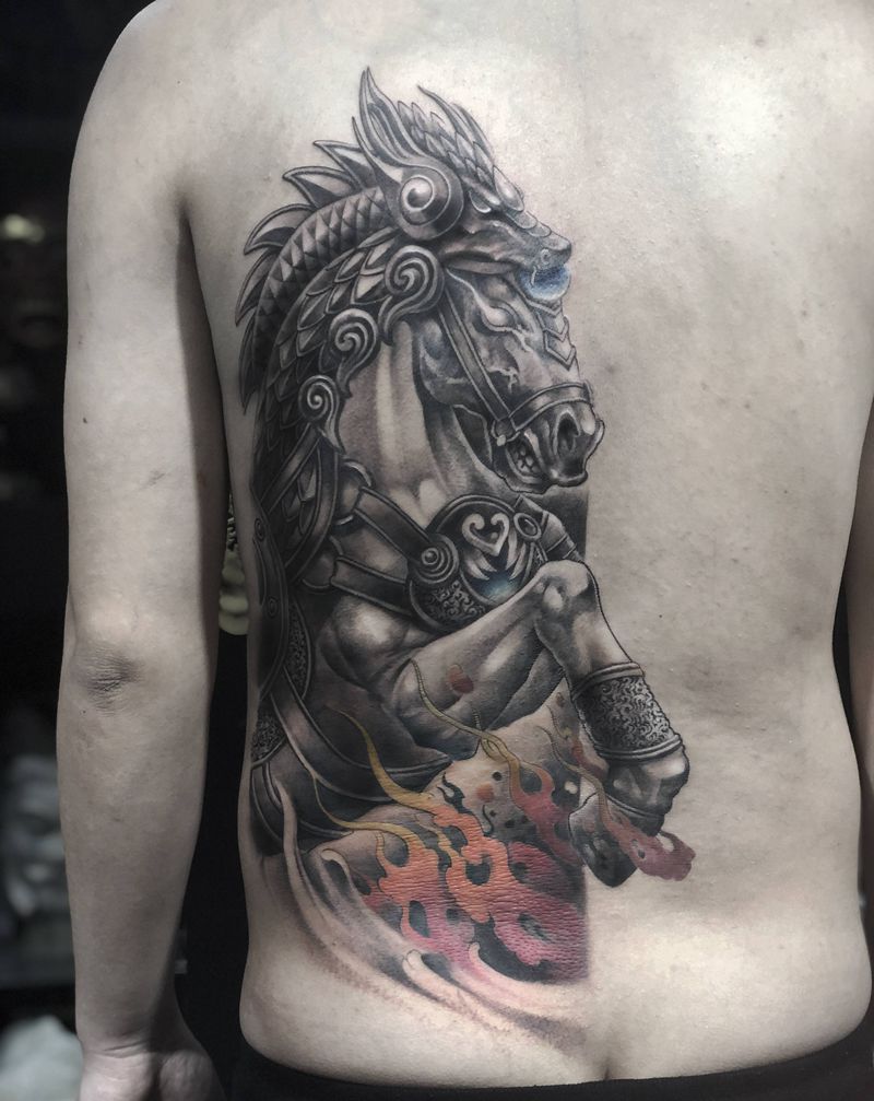 战马.未完纹身图片_背部新传统纹身图案