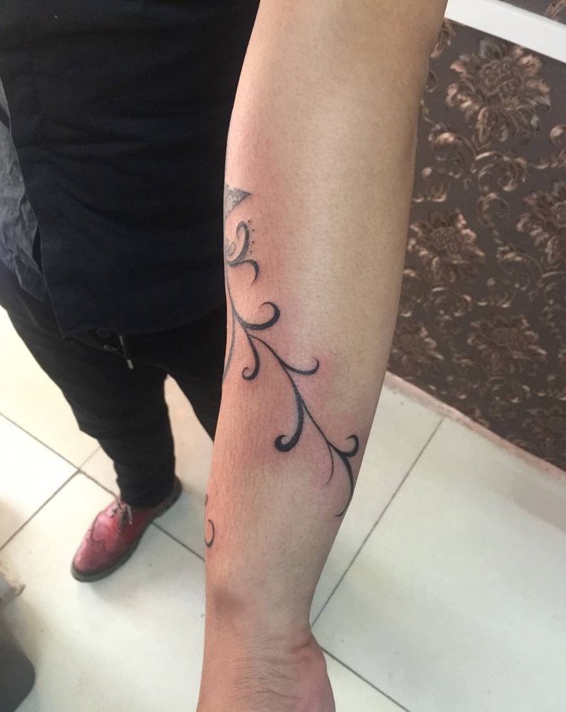 小清新纹身图片_成品手臂清新植物几何纹身图案
