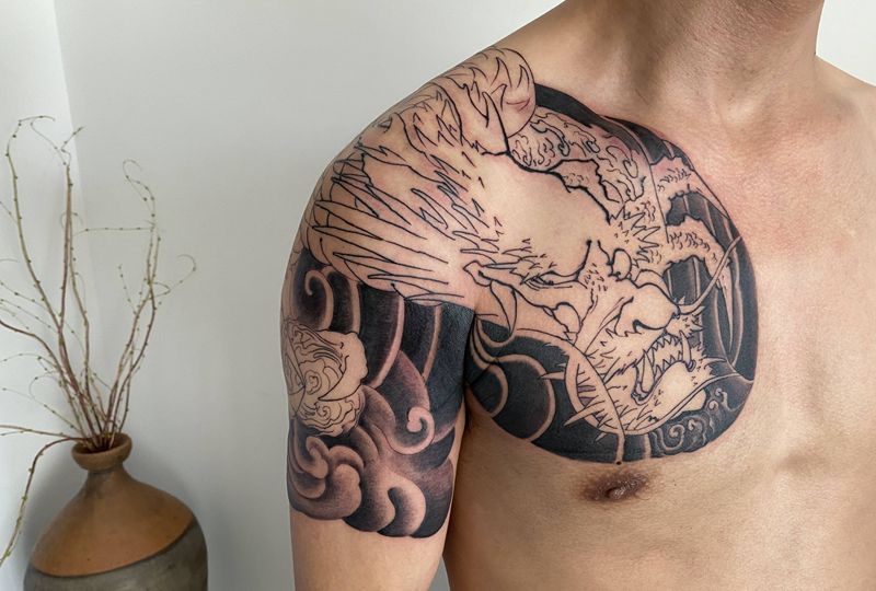 • T云龙九郎纹身图片_背部老传统云龙九郎纹身图案