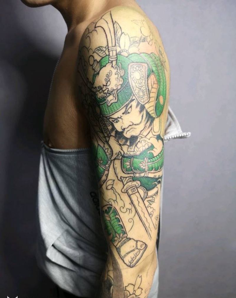 当前位置: 首页 >山东省青岛市纹身店- 雕龙堂刺青纹身图案>彩色武士纹身图片_手臂新传统老传统武士纹身图案