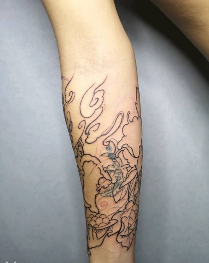 当前位置: 首页 >山东省青岛市纹身店- 雕龙堂刺青纹身图案>包小臂线条纹身图片_手臂新传统象神牡丹纹身图案