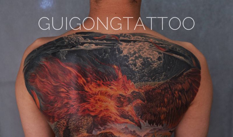 当前位置: 首页 >山东省济南市纹身店-鬼工刺青纹身图案>苍穹之上〈金乌〉纹身图片_背部欧美写实纹身图案