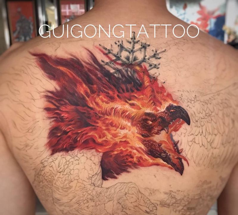 黑灰满背纹身图案
