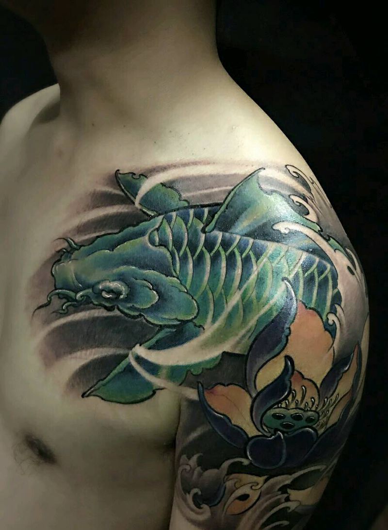 当前位置: 首页 >山东省济南市纹身店-鬼工刺青纹身图案>鲤鱼遮盖图腾纹身图片