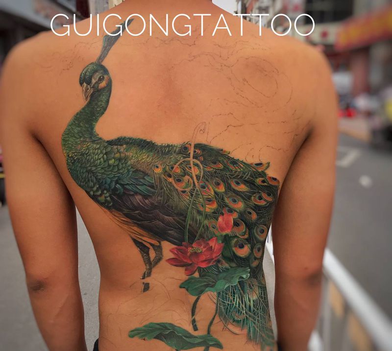 黑灰满背纹身图案