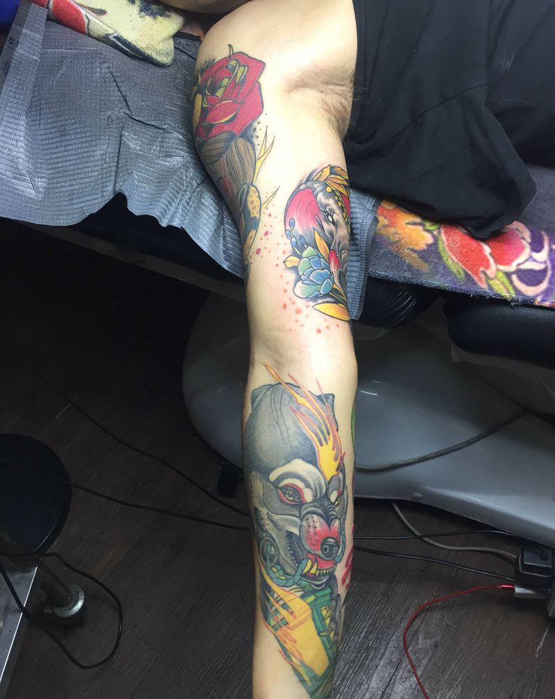 当前位置: 首页 >山东省济南市纹身店-龙啸堂刺青文化纹身图案>欧美作品纹身图片_手臂New School纹身图案