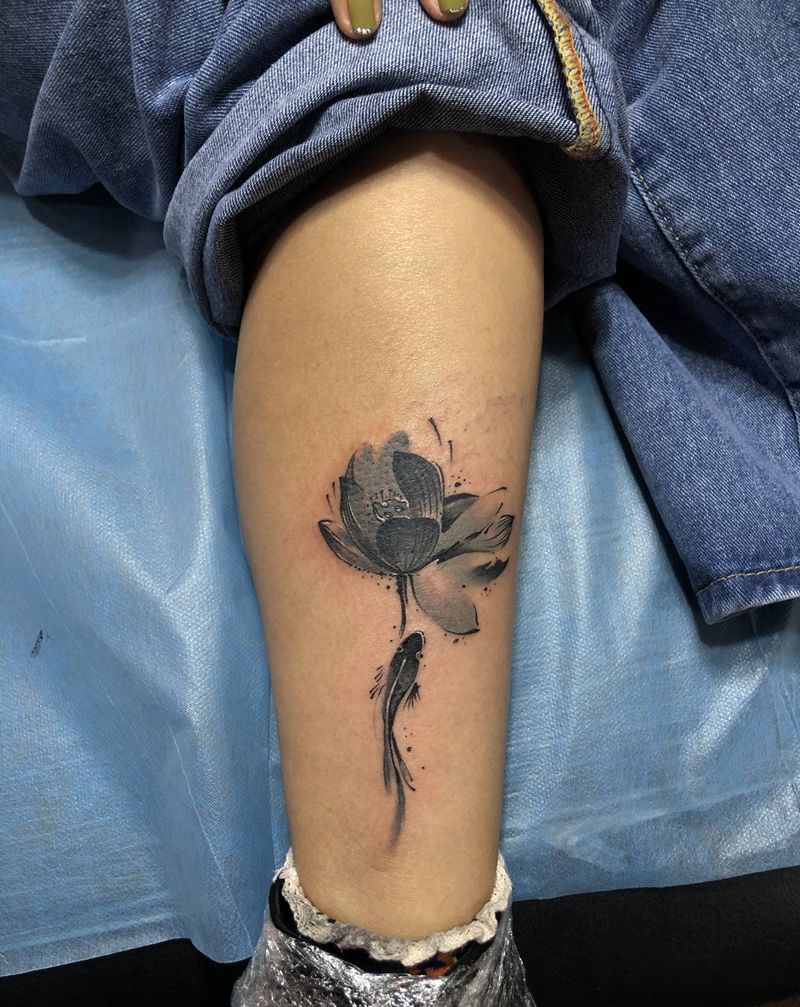 当前位置: 首页 >山东省济南市纹身店-龙啸堂刺青文化纹身图案>荷花纹身图片_水墨纹身图案