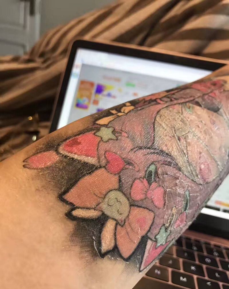恢复后纹身图片_成品欧美写实肖像人物青岛乐道刺青培训手臂手部纹身图案