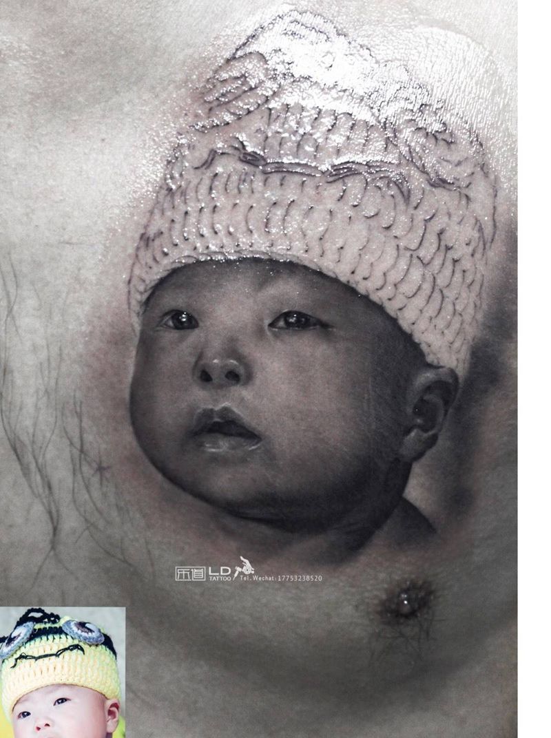 乐道纹身图片_成品手臂胸部欧美写实肖像原创人物青岛培训纹身图案