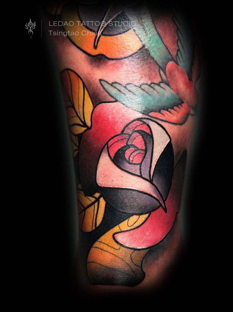 • T网红王老大花腿龙纹身图片_腿部新传统纹身图案