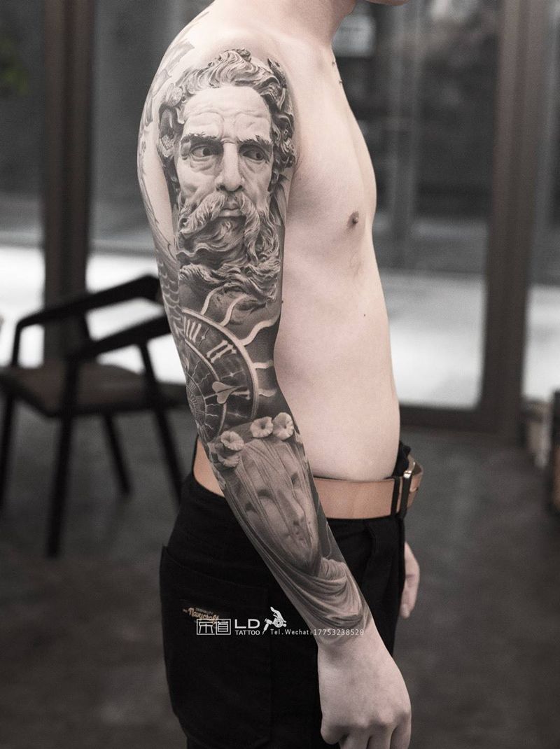 当前位置: 首页 >山东省青岛市纹身店-乐道刺青纹身图案>乐道写实雕塑作品恢复纹身图片_成品手部手臂肖像欧美写实人物原创宗教鬼神纹身图案