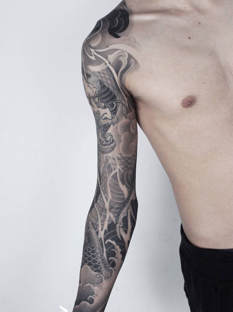 • T云龙九郎纹身图片_背部老传统云龙九郎纹身图案