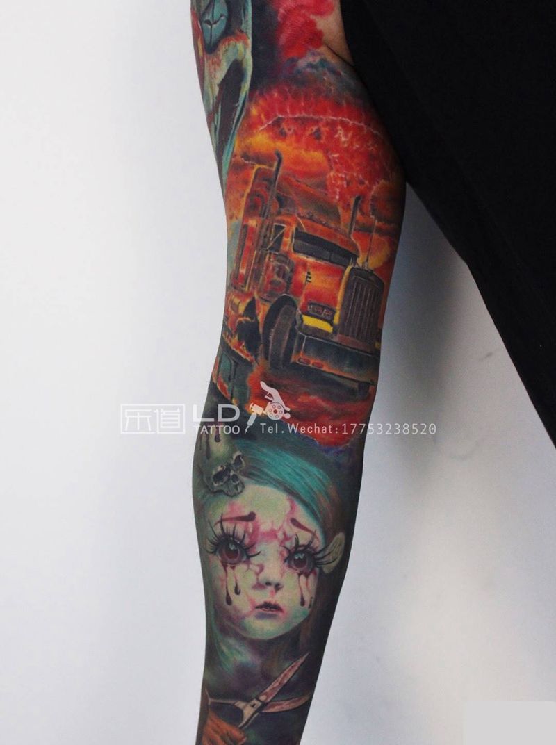 乐道叠彩纹身图片_手臂欧美写实水彩乐道刺青纹身图案