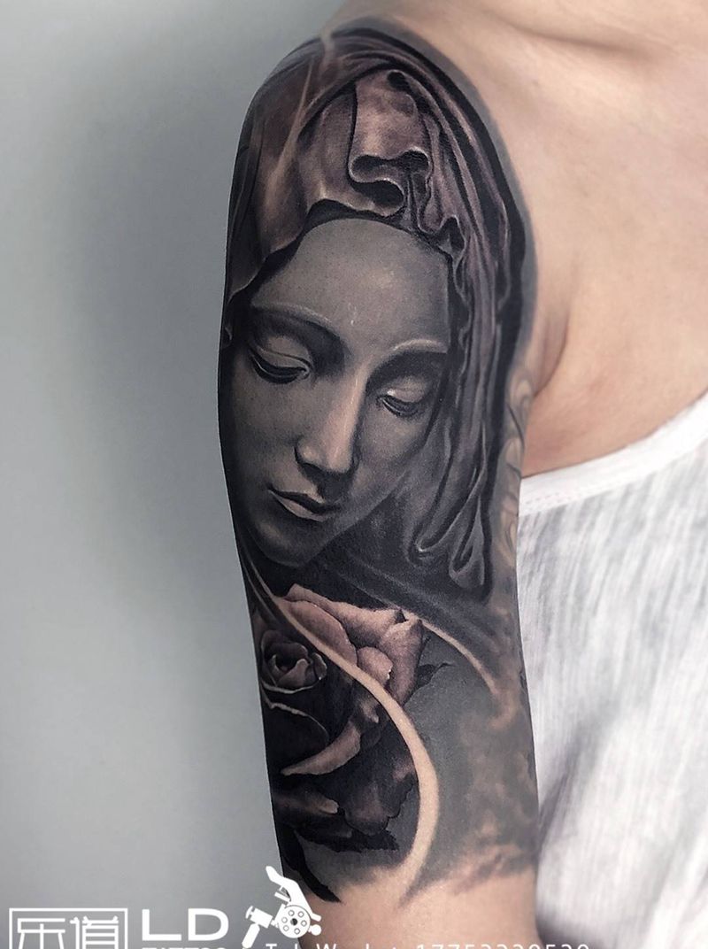当前位置: 首页 >山东省青岛市纹身店-乐道刺青纹身图案>乐道欧美写实纹身图片_肩部手臂欧美写实圣母圣母乐道刺青纹身图案