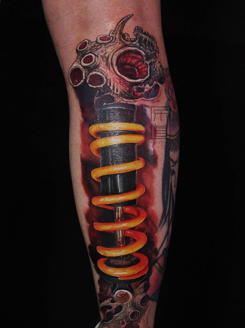 当前位置: 首页 >山东省青岛市纹身店-乐道刺青纹身图案>乐道欧美彩色叠彩机械腿纹身图片_腿部脚部欧美写实机械腿减震臂乐道刺青纹身图案
