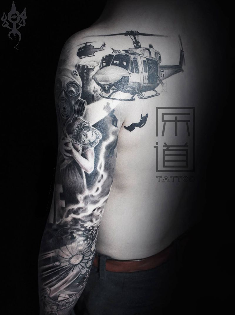 乐道反战花臂 早期作品纹身图片_手臂欧美写实花臂花臂乐道刺青纹身图案