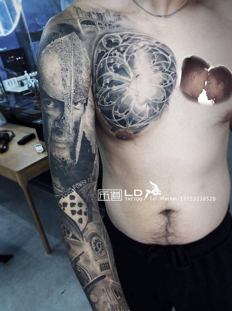 当前位置: 首页 >山东省青岛市纹身店-乐道刺青纹身图案>勇士之魂纹身图片_手臂胸部欧美写实斯巴达花臂欧美花臂纹身图案