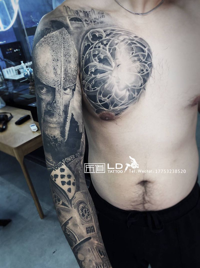当前位置: 首页 >山东省青岛市纹身店-乐道刺青纹身图案>勇士之魂纹身图片_手臂胸部欧美写实斯巴达花臂欧美花臂纹身图案