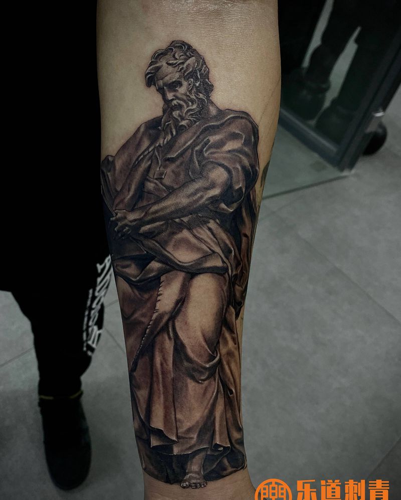 乐道 雕塑纹身图片_手臂手部欧美写实雕塑写实纹身图案