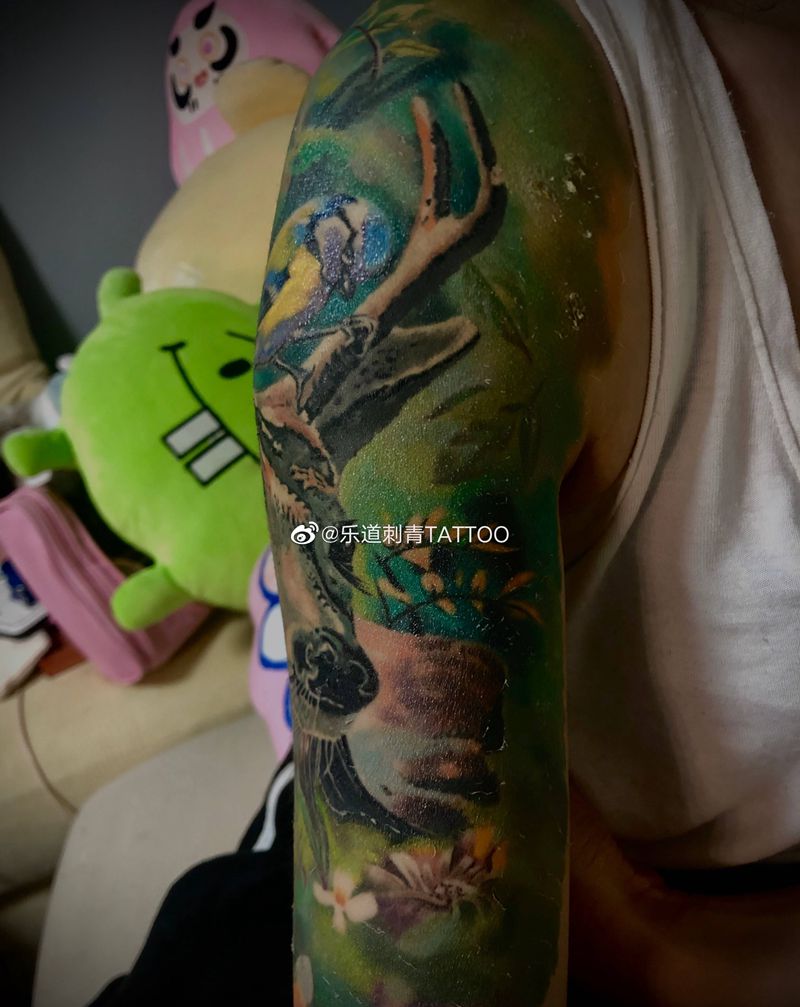 当前位置: 首页 >山东省青岛市纹身店-乐道刺青纹身图案>乐道叠彩 仙气缭绕纹身图片_肩部手臂欧美写实New School鹿鹿鸟纹身图案