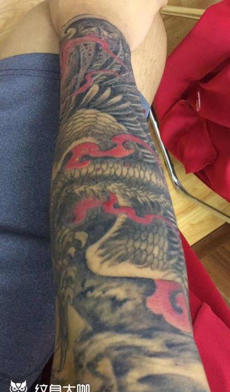 包小臂凤凰涅槃爆皮恢复中纹身图片