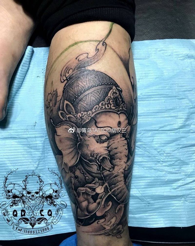 特价象神图,800纹身图片_成品手稿腿部手臂传统动物原创纹身图案