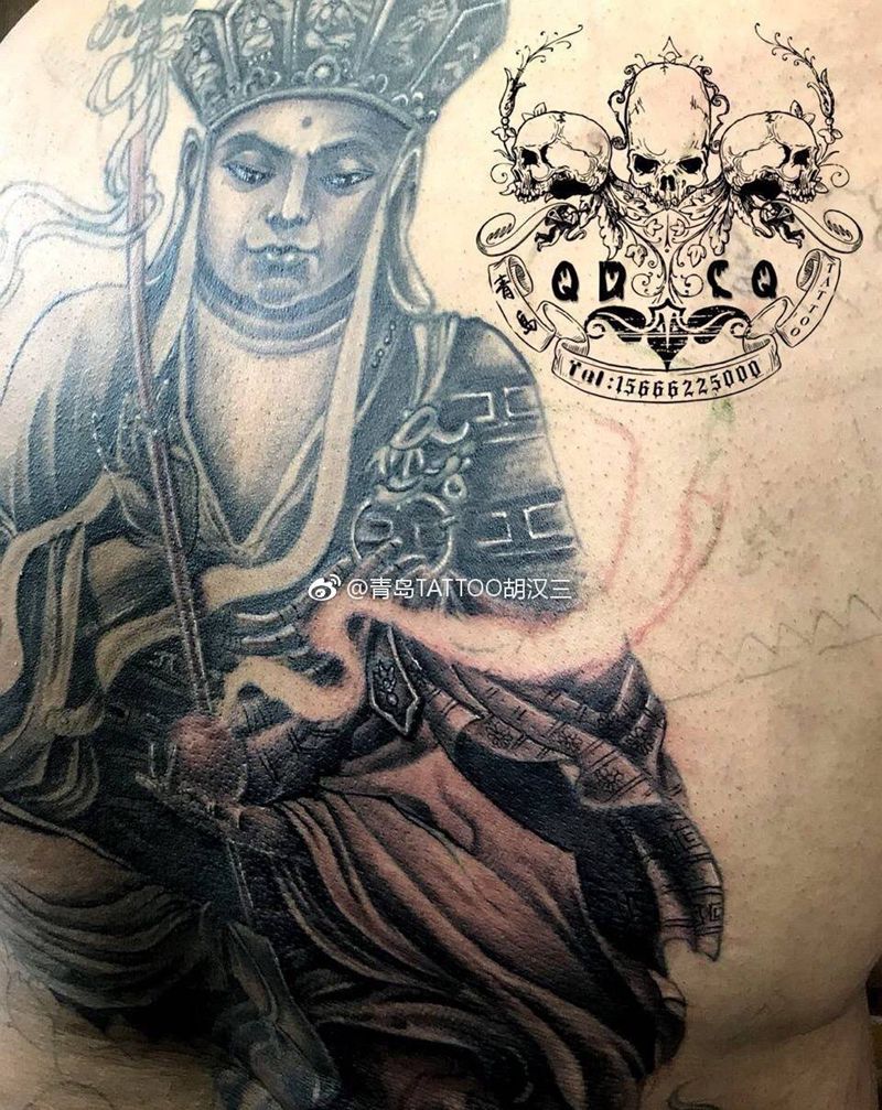 当前位置: 首页 >山东省青岛市纹身店-八玖刺青纹身图案>藏菩萨下次继续,疼跑了