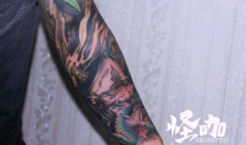 当前位置: 首页 >山东省青岛市纹身店-怪咖纹身刺青(凯德店)纹身图案>新老传统通用纹身图片_手臂新传统纹身图案