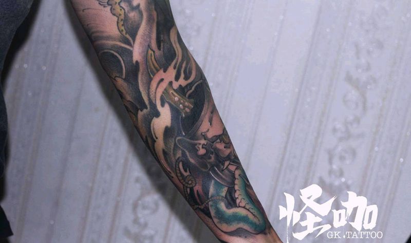 当前位置: 首页 >山东省青岛市纹身店-怪咖纹身刺青(凯德店)纹身图案>日式传统 般若纹身图片_手臂新传统纹身图案