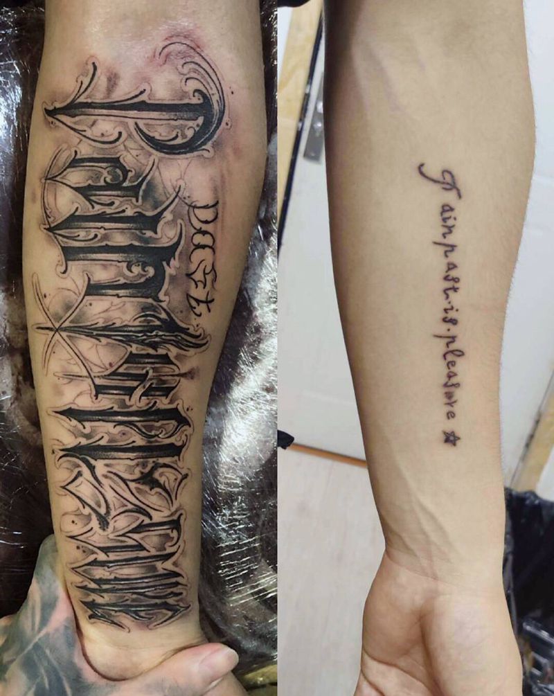 当前位置: 首页 >山东省青岛市纹身店-灵刺青 SOULTATTOO纹身图案>遮盖纹身图片_花体字纹身图案