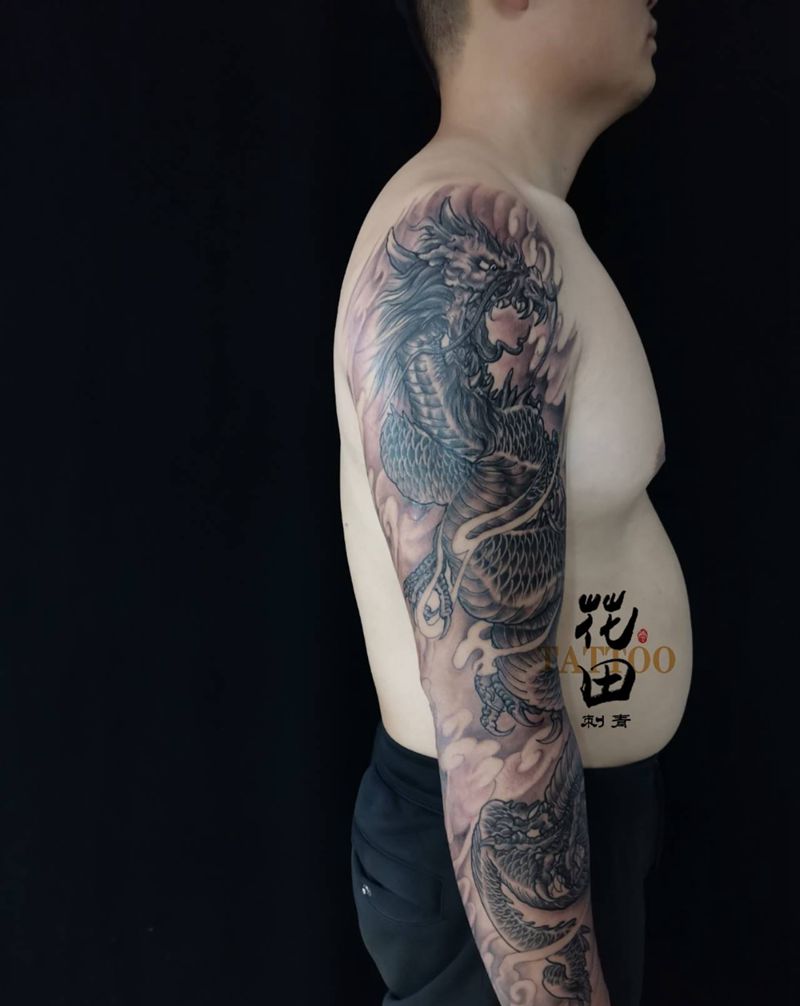 当前位置: 首页 >山东省青岛市纹身店-花田刺青纹身图案>新传统花臂龙纹身图片_肩部手臂新传统老传统龙花臂纹身图案