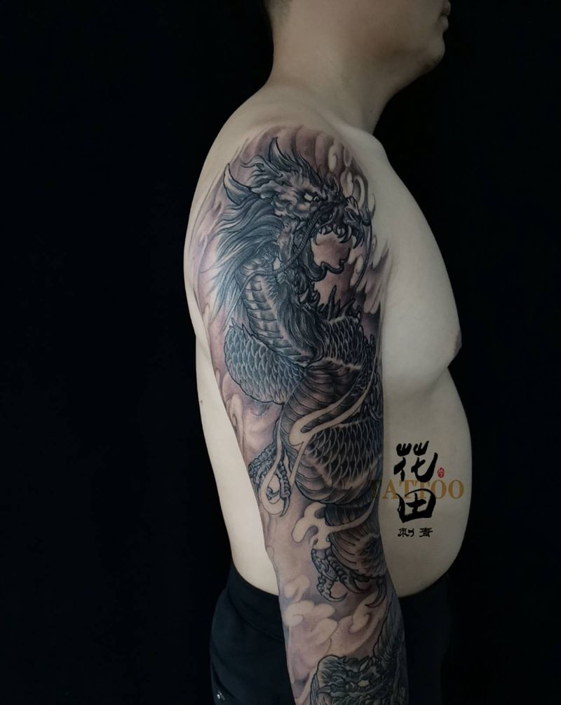 当前位置: 首页 >山东省青岛市纹身店-花田刺青纹身图案>新传统花臂龙纹身图片_肩部手臂新传统老传统龙花臂纹身图案
