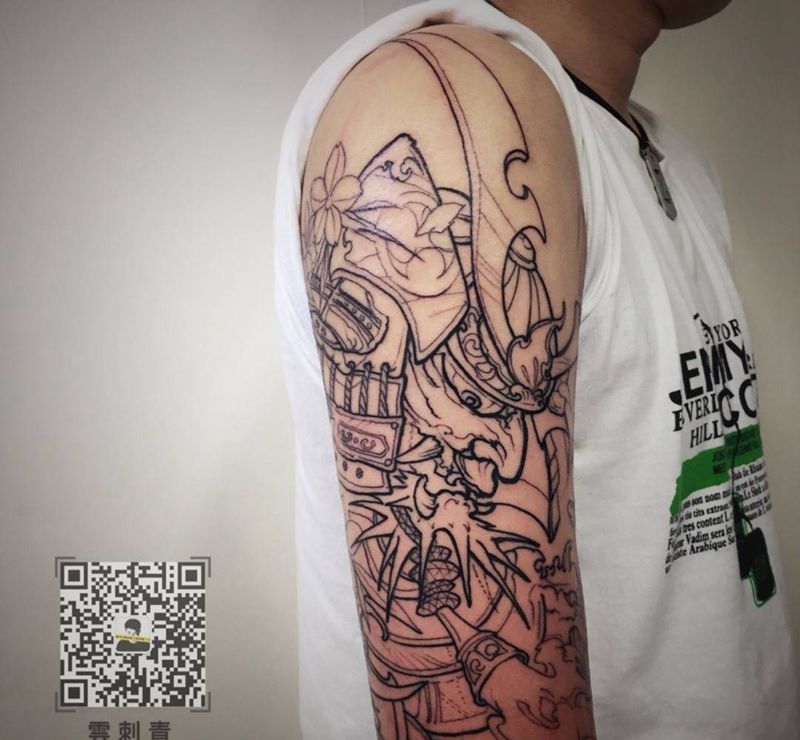 当前位置: 首页 >山东省青岛市纹身店-花田刺青纹身图案>大臂线条纹身图片_成品肩部手臂传统国画人物鬼神雲刺青宗教纹身图案