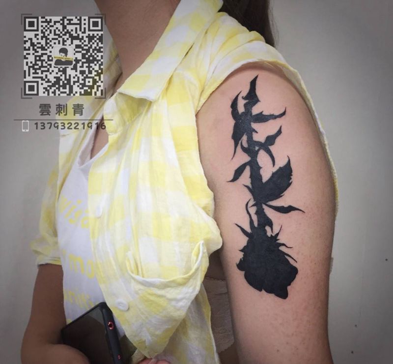 当前位置: 首页 >山东省青岛市纹身店-花田刺青纹身图案>黑玫瑰遮盖纹身图片_手臂肩部几何遮盖玫瑰雲刺青纹身图案