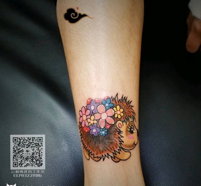 当前位置: 首页 >山东省青岛市纹身店-花田刺青纹身图案>小腿卡通刺猬遮盖纹身图片_腿部Old School卡通刺猬彩色纹身图案