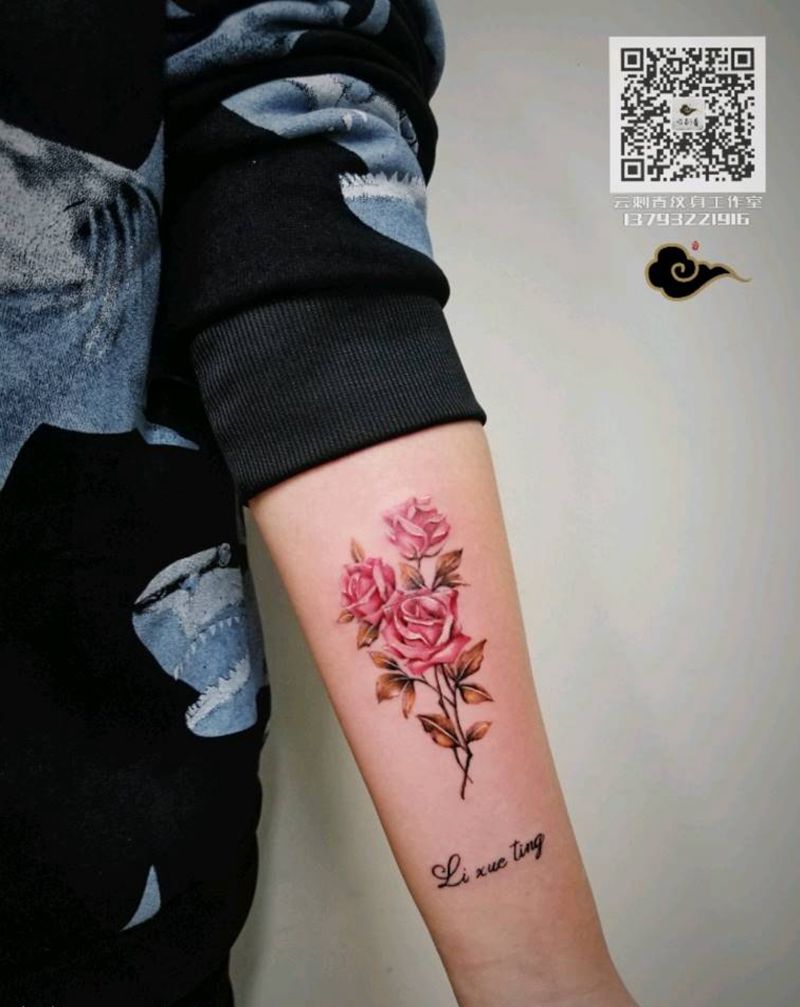 当前位置: 首页 >山东省青岛市纹身店-花田刺青纹身图案>玫瑰花纹身图片_手臂New School水彩玫瑰花小清新纹身图案