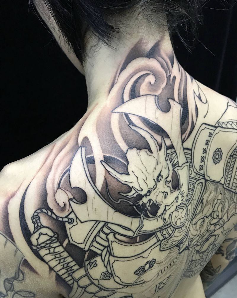 当前位置: 首页 >山东省青岛市纹身店-SKIN TICKET纹身图案>#Samura纹身图片_背部颈部新传统New School纹身图案