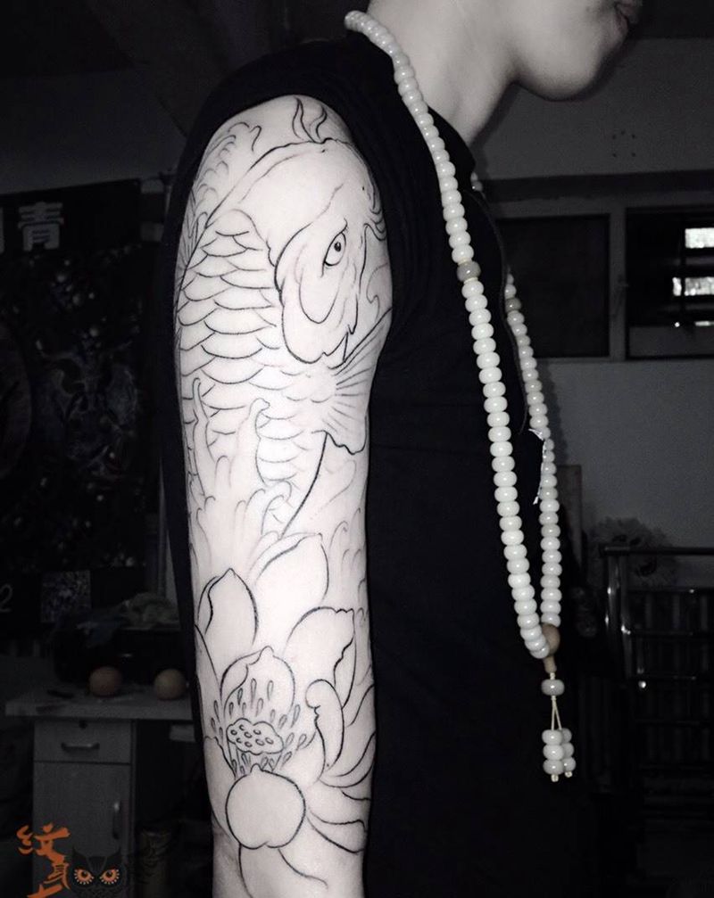 当前位置: 首页 >山东省青岛市纹身店-鬼纹阁刺青纹身图案>招财神鱼纹身图片