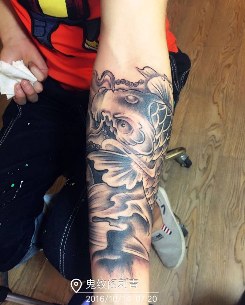 当前位置: 首页 >山东省青岛市纹身店-鬼纹阁刺青纹身图案>招财鲤鱼纹身图片