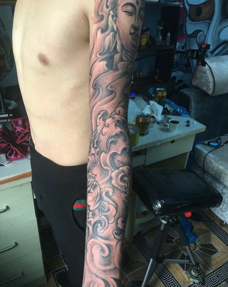 当前位置: 首页 >山东省青岛市纹身店-鬼纹阁刺青纹身图案>包臂纹身图片