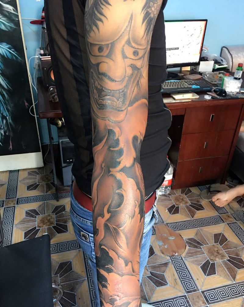 当前位置: 首页 >山东省青岛市纹身店-鬼纹阁刺青纹身图案>艺妓与般若包臂纹身图片