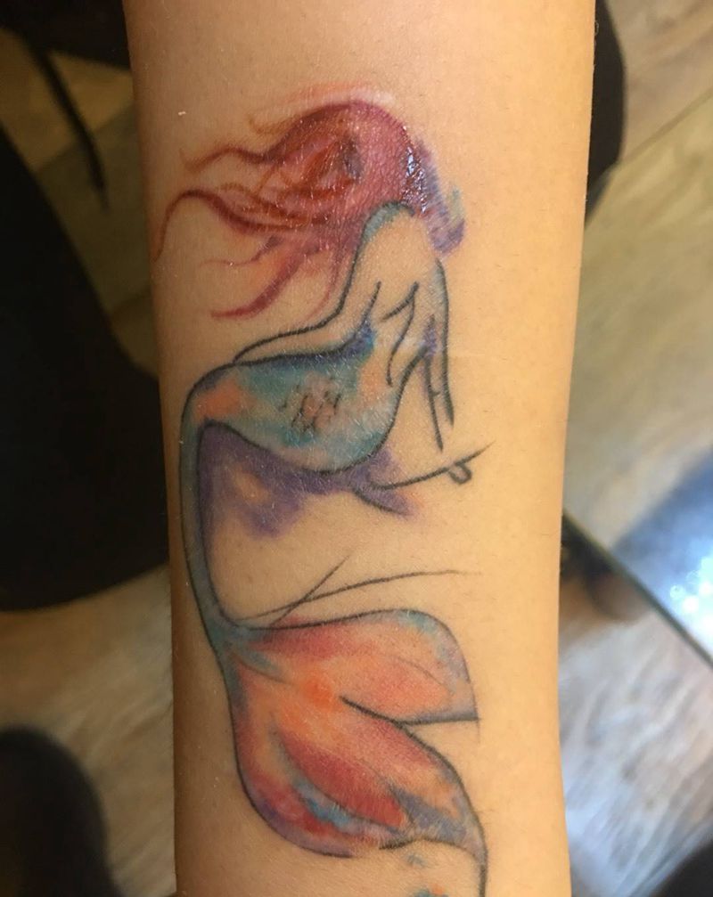 当前位置: 首页 >山东省青岛市纹身店-鬼纹阁刺青纹身图案>修改美人鱼纹身图片_成品手臂清新动物纹身图案