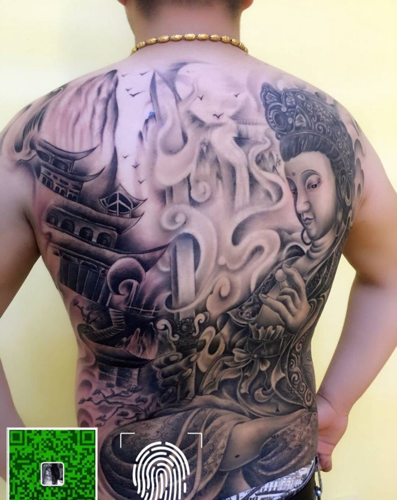 • 黑灰满背纹身图案
