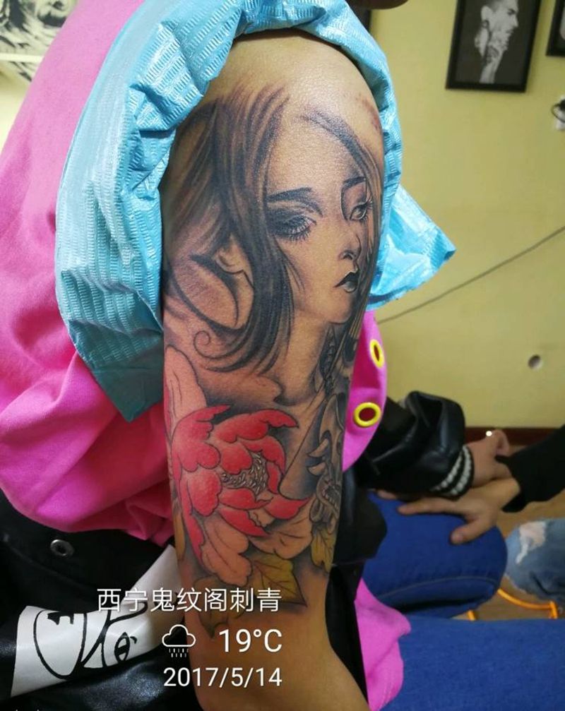 当前位置: 首页 >山东省青岛市纹身店-鬼纹阁刺青纹身图案>艺妓般若纹身图片_肩部传统人物鬼神成品纹身图案