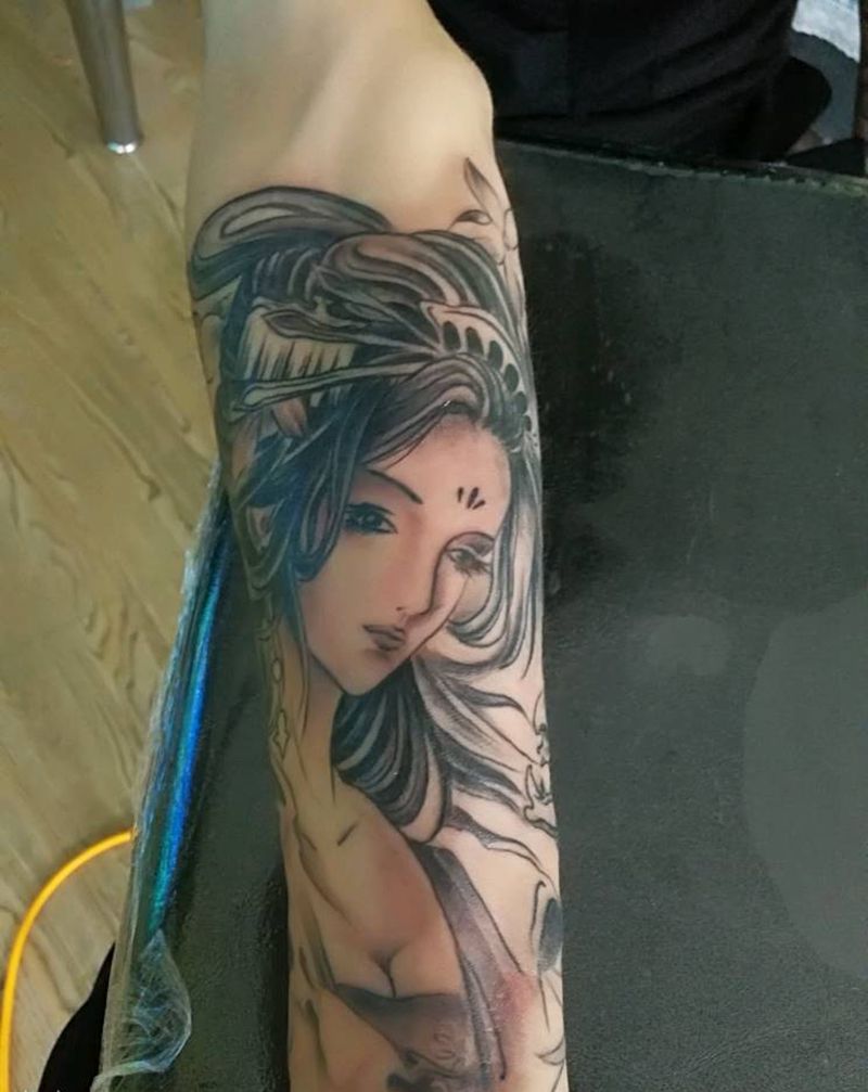 当前位置: 首页 >山东省青岛市纹身店-鬼纹阁刺青纹身图案>艺妓纹身图片