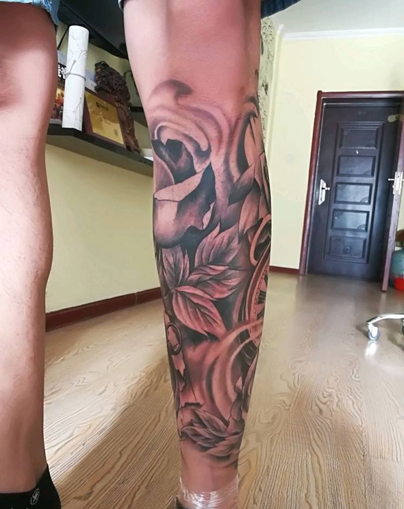 当前位置: 首页 >山东省青岛市纹身店-鬼纹阁刺青纹身图案>欧美风格纹身图片_腿部欧美植物成品纹身图案