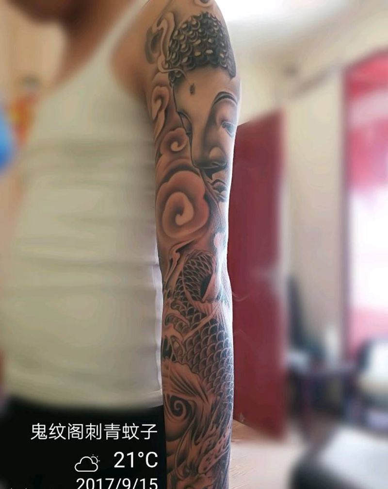佛头,鳌鱼纹身图片