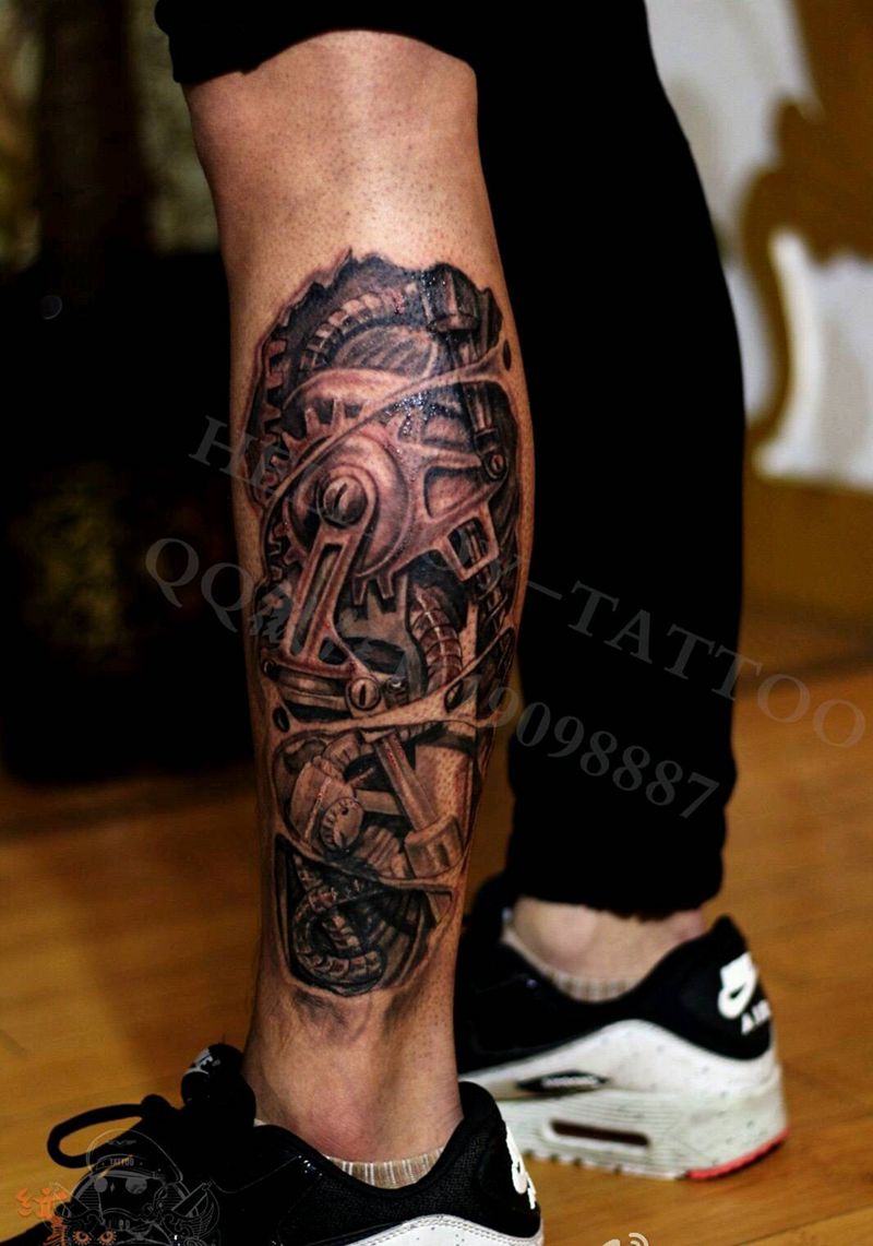 当前位置: 首页 >山东省青岛市纹身店-青岛地狱男爵刺青纹身图案>男士机械小腿纹身图片
