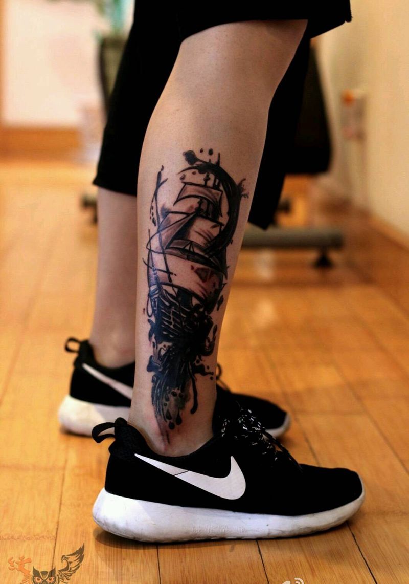 当前位置: 首页 >山东省青岛市纹身店-青岛地狱男爵刺青纹身图案>女士小腿遮盖纹身图片
