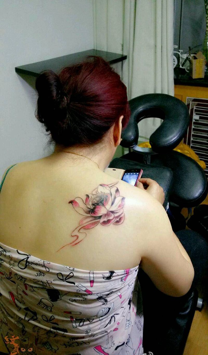 当前位置: 首页 >山东省青岛市纹身店-青岛地狱男爵刺青纹身图案>女士阿姨肩胛骨荷花纹身图片